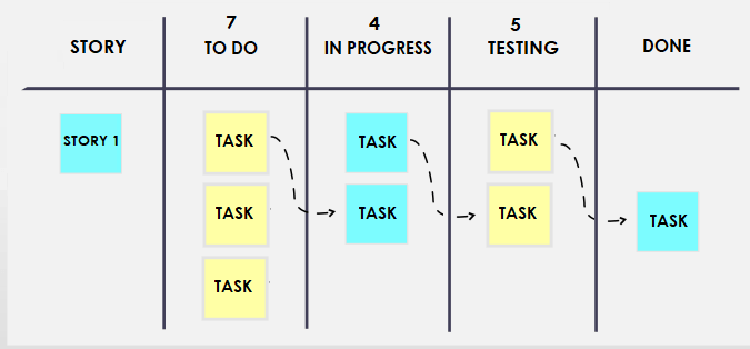 As mentioned above, scrum does not define a workflow by definition, so a Kanban table is used as a complement. The greatest advantage of the Kanaban board is the flow visualisation. The first column is the project’s backlog that is prepared at the beginning of the sprint. The minimum number of columns is 3 (to do, in progress, done), for more complex projects you can add new columns, such as testing or deploy.